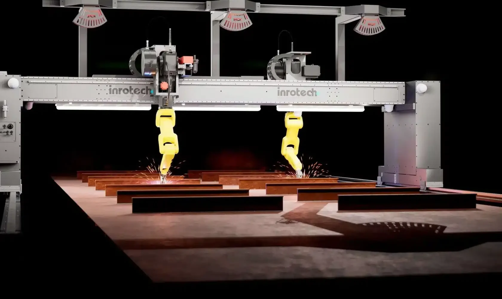 The Inrotech-MicroTwin® is a compact and light weight gantry with 2 welding robots, welding machines and a scanning system for identifying stiffeners on panels. Specifically designed for the welding of micro panels, sub-assemblies and T-profiles in the shipbuilding industry, but can also be used for other purposes. Works fully automatic, push the “start” button; after completed scanning the welding starts automatically.